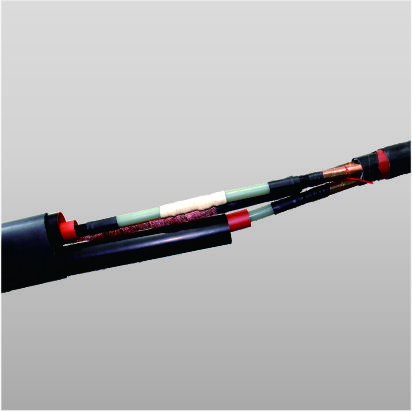 The joints are designed for MV screened, 1-core polymeric insulated cables with or without armour. The same design principles are used for 3-core cables. 1. Electrical stress control Stress control tube, together with stress relief mastic, is used to smooth out the electrical field at the cable screen ends. 2. Insulation and screen Heat shrink insulation tube delivers consistent insulation thickness to meet or exceed that of the cable. Heat shrink semi-conductive /insulation dual layer tube is also adopted to help ensure a void-free interface between the insulation and screen. 3. Metallic shielding Copper mesh wrapped around the joint area rebuilds the metallic screen. Either soldering or solderless earth connection is available to provide screen continuity across the joint. 4. Outer sealing and protection The outer sealing and protection is performed by an adhesive coated heat shrink tube. It provides mechanical protection and chemical resistance as expected from cable oversheath.